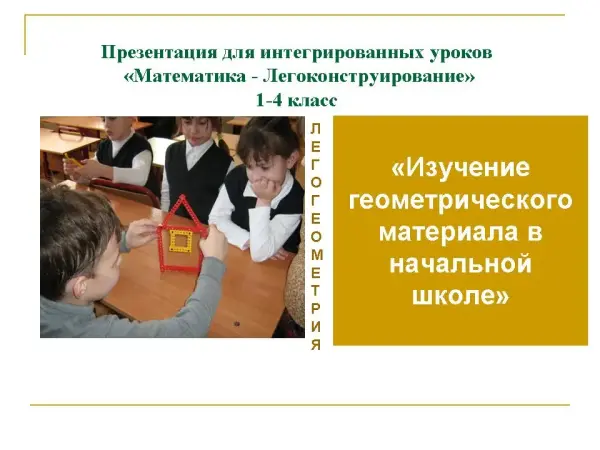В работе представлены новые подходы к изучению геометрического материала с 1-го по 4-й класс с применением легоконструктора. Все геометрические знания дети усваивают в процессе разнообразной практической и интеллектуальной деятельности.