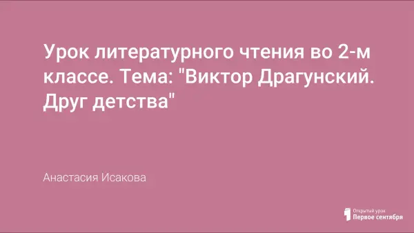Цели урока: знакомство и анализ рассказа В.Драгунского "Друг детства"; развитие навыка выразительного чтения; обогащение словарного запаса учащихся; развитие коммуникативных способностей; воспитание любви к окружающим вещам.