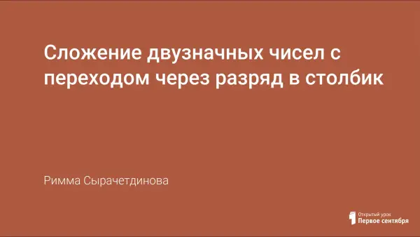 Урок во 2-м классе призван вывести алгоритм сложения двузначных чисел с переходом через разряд в столбик; совершенствовать вычислительные навыки и умение решать задачи; развивать логическое мышление; прививать бережное отношение к природе.