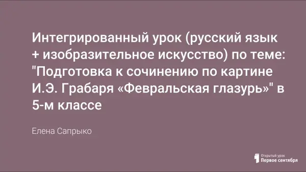 В ходе урока учащиеся готовятся к написанию сочинения, обогащают словарный запас, составляют план к сочинению, а также развивают творческое воображение и литературную речь, знакомятся с произведениями художника.