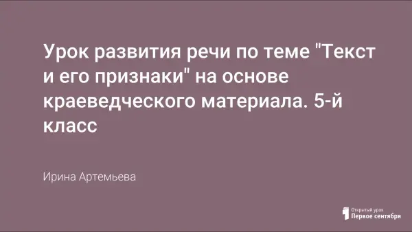 Учащиеся к началу 5-го класса уже имеют представление о тексте и его признаках. Это один из первых уроков по развитию речи, где повторяются, обобщаются, систематизируются сведения о тексте, его теме, основной мысли, полученные в курсе начальной школы. Одна из главных задач урока – формирование умения строить текст на основе сочинения-миниатюры.