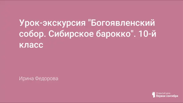 Урок-экскурсия "Богоявленский собор. Сибирское барокко". 10-й класс