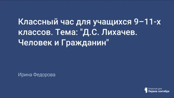 Классный час для учащихся 9–11-х классов. Тема: "Д.С. Лихачев. Человек и Гражданин"