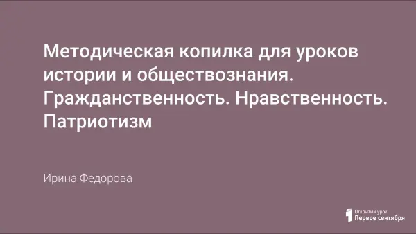 Методическая копилка для уроков истории и обществознания. Гражданственность. Нравственность. Патриотизм