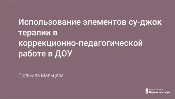 В статье раскрыты возможности использования су-джок терапии в сочетании с коррекционно-логопедической и лечебно-оздоровительной работой. Освещены сущность данного метода, цель и задачи его использования, пути реализации в условиях ДОУ. Представлены формы работы, методы и приемы, обозначены этапы работы и основные требования к её организации; приведены примеры игр и упражнений с использованием массажеров су-джок, которые может применять педагог на различных этапах занятия.