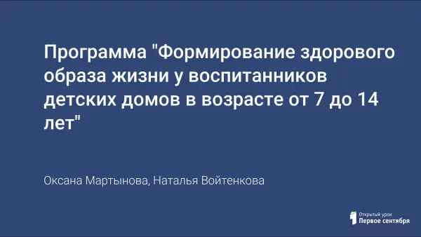 Программа "Формирование здорового образа жизни у воспитанников детских домов в возрасте от 7 до 14 лет"