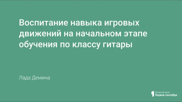 Целью урока – проанализировать вопрос формирования у детей 6–7 лет основных навыков игры на гитаре на начальном этапе обучения.