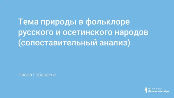 Что общего в творчестве народов и есть ли существенные отличия? Богат не только фольклор русского народа, но и осетинского. Природа в фольклоре и обычаях обоих народов занимает большое место. Свой отпечаток тема природы нашла в каждом из народных праздников.