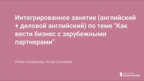 Интегрированное занятие (английский + деловой английский) по теме "Как вести бизнес с зарубежными партнерами"