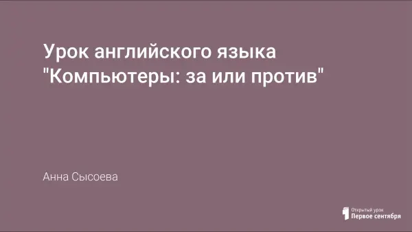 На уроке ученики выясняют, какие есть преимущества и недостатки у компьютера и что нужно сделать, чтобы, не навредив себе, получить нужный результат. В качестве материалов будут использованы тексты для чтения и аудирования, а также компьютерная презентация. В ходе урока учащимся необходимо не только проанализировать услышанную, прочитанную и уведенную информацию, но и сделать выводы, используя имеющиеся знания и опыт.