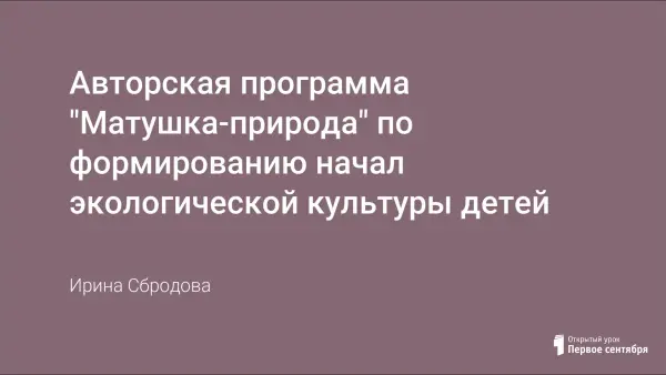 Авторская программа "Матушка-природа" по формированию начал экологической культуры детей
