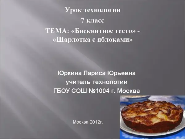 В ходе занятия учащиеся получают основные понятия о бисквитном тесте и способах его приготовления. Учатся готовить бисквитное тесто и формовать из него изделия.
