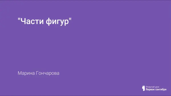 На уроке расширяются представления детей о фигурах. Дети знакомятся с делением фигур на части и устанавливают взаимосвязь между целой фигурой и ее частями. В упражнениях надо вставить в равенства пропущенные буквы на основе соотношений между целой фигурой и ее частями.