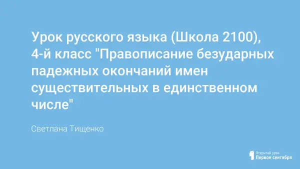 В ходе урока дети учатся распознавать склонение имен существительных, изменять имена существительные по падежам и писать безударные падежные окончания имен существительных в единственном числе.