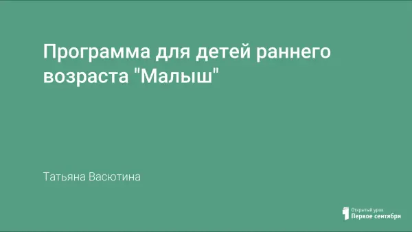Программа разработана для детей раннего возраста (2‒3 года) вместе с родителями. Занятие длительностью 1 час развивает целенаправленное восприятие, способность ребенка удерживать зрительное и слуховое внимание, обогащает сенсорный опыт, совершенствует зрительную активность. Курс состоит из 60 занятий 2 раза в неделю.
