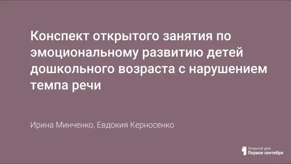 Конспект открытого занятия по эмоциональному развитию детей дошкольного возраста с нарушением темпа речи