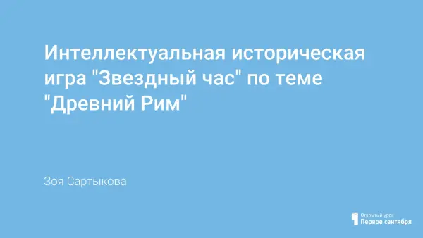 Игра состоит из 4 туров, в ходе которых будут выбывать проигравшие участники. Цель игры - повторить и закрепить изученный материал по истории Древнего мира; используя игровую форму, развивать у учащихся интерес к истории Древнего Рима; развивать логическое мышление, умение анализировать, выделять главное, быстро и правильно применять знания; воспитывать коммуникативные способности, поддержка духа соперничества, активности, лидерства и взаимопомощи.