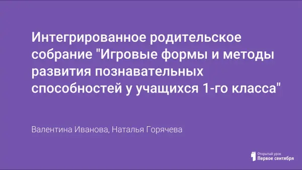 Целью родительского собрания является развитие познавательных способностей учащихся первого класса. Их хорошее развитие напрямую помогает ребёнку учиться более продуктивно: умение концентрировать своё внимание помогает малышу сосредоточенно работать на уроке, не отвлекаясь на посторонние дела, а также в течение длительного времени выполнять монотонную и рутинную работу.
