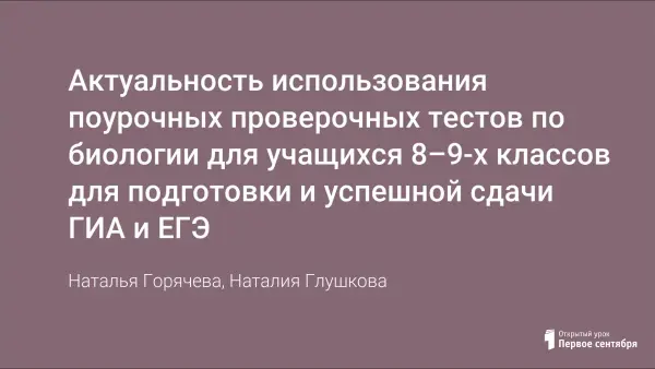 Биология – одна из важнейших наук современности. Только изучая биологию, можно познать законы бытия, овладеть тайнами сотворения мира и проистекания жизни в нем. Педагоги стали уделять большое внимание проверке знаний именно в тестовой форме, что помогает учащимся адаптироваться к новой форме экзаменов. В форме тестов педагоги стараются оценивать знания не только в конце триместров, но и для закрепления и проверки знаний по пройденным темам.