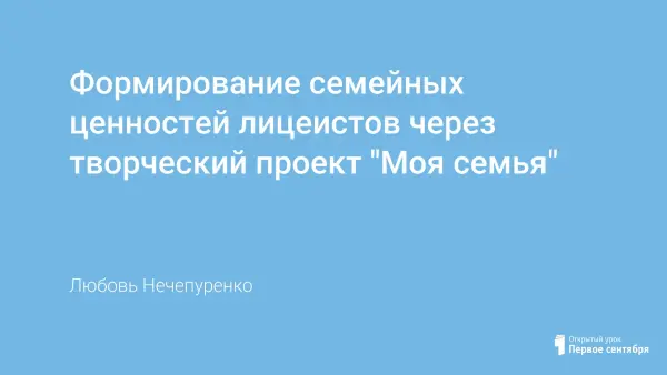 Цели проекта: развитие патриотического самосознания учащихся через познание истории семьи; формирование духовного единства семьи; интернациональное воспитание лицеистов; расширение знаний лицеистов о своей семье; формирование гражданского видения проблем современной семьи.