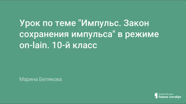Урок проводится в режиме on-lain, информация для изучения импульса тела и закона сохранения импульса заимствуется из Internet. Использование Internet делает процесс познания более интересным и творческим, обеспечивает развитие личности, ориентирующейся в информационном пространстве и обладающей информационной культурой.