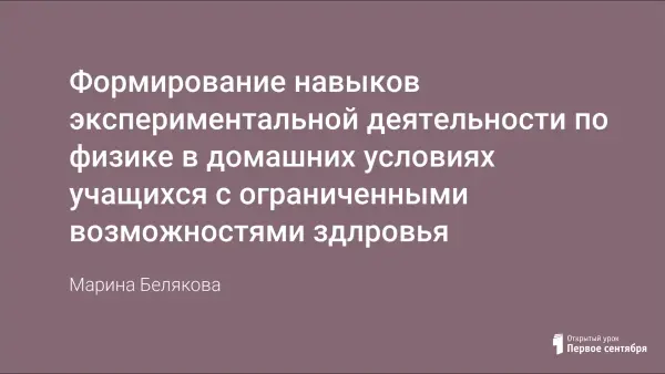 В Концепции ФГОС для обучающихся с ограниченными возможностями здоровья приведены требования к структуре содержания образования и его результатам. Для осуществления экспериментальной деятельности по физике учащиеся с ограниченными возможностями здоровья получают инструкцию по выполнению домашнего эксперимента, в которой дается перечень необходимого оборудования и точный алгоритм его выполнения. Приведены примеры домашних лабораторных работ, описаны образовательные результаты учеников с ОВЗ: предметные и метапредметные, личностные.