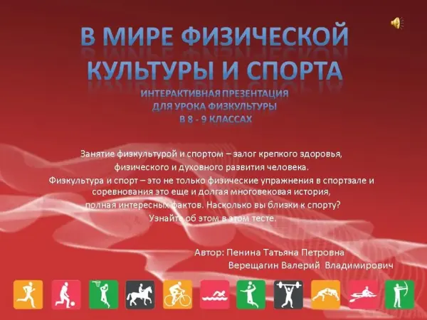 Упражнения, использованные в уроке не сложные, но их эффект заключается в том, что учащиеся работают одновременно с двумя баскетбольными мячами: упражнения интересны для детей, у урока высокая моторная плотность. В начале урока проводится интерактивная викторина "В мире физической культуры". Учащимся предлагается 16 вопросов по истории спорта и олимпийского движения, теории и практике физкультуры и спорта, а также варианты ответа (на одном слайде).