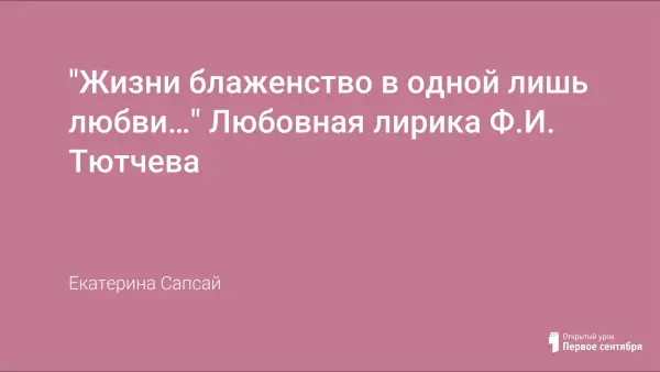 "Жизни блаженство в одной лишь любви…" Любовная лирика Ф.И. Тютчева