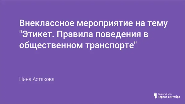 Правила поведения в общественном транспорте – актуальные поведенческие навыки ребенка. Формирование этих навыков возможно на воспитательных мероприятиях, проводимых в ГПД. В интерактивной беседе дети вспоминают правила поведения в общественном транспорте, говорят о важности соблюдения установленных правил. Итогом занятия должно стать не только понимание того, что необходимо проявлять вежливость, но и повышение общего культурного уровня учащихся.