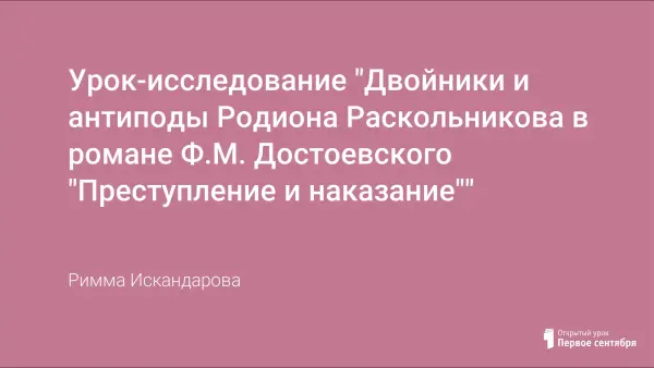 Урок-исследование "Двойники и антиподы Родиона Раскольникова в романе Ф.М. Достоевского "Преступление и наказание""