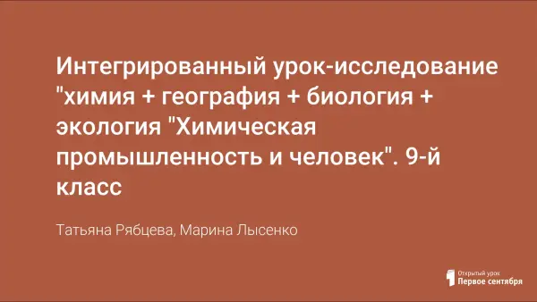 Интегрированный урок-исследование "химия + география + биология + экология "Химическая промышленность и человек". 9-й класс