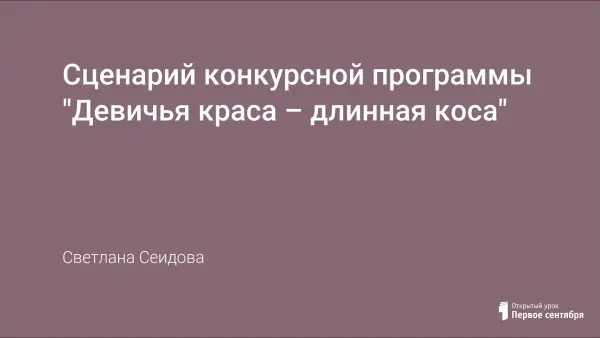 Сценарий содержит в себе праздничную поздравительную программу к Международному женскому дню 8 марта, а также конкурсы для девочек и исторические факты об отношении в старину к женским прическам. Цель: расширить знание учащихся об истории возникновения прически.