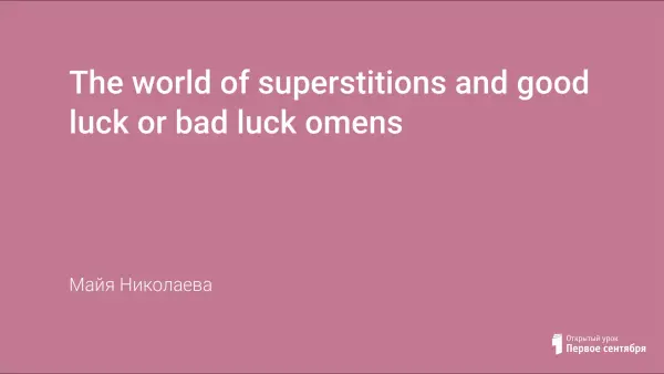 Цели урока: формирование у учащихся умений реализации новых способов действия, развитие монологического и диалогического высказывания для решения коммуникативной задачи, введение и активизация лексических единиц по теме "приметы и суеверия"; расширение понятийной базы за счет включения в нее новых элементов – изучение примет и суеверий нашей страны и страны изучаемого языка.