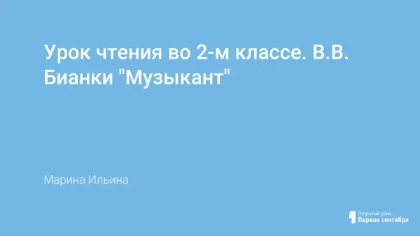Цели урока: знакомство с творчеством В.В. Бианки, работа над формированием правильного и выразительного чтения, развитие памяти, внимания; воспитание любви к животным.
