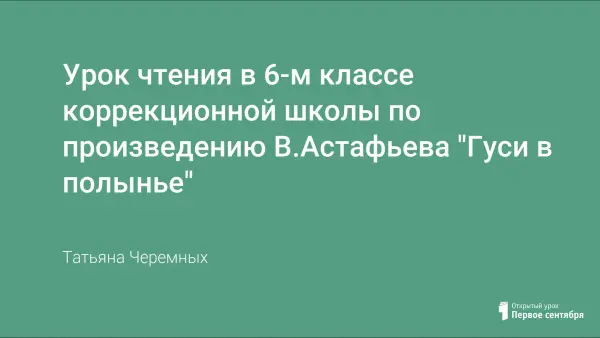 Данная работа представляет собой урок чтения в коррекционной школе по произведению Виктора Астафьева «Гуси в полынье». Урок-обобщение, направленный на формирование систему нравственных понятий.