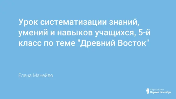 Урок систематизации знаний, умений и навыков учащихся, 5-й класс по теме "Древний Восток"