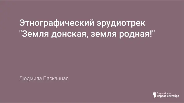 Этнографический эрудиотрек – конкурсная программа с использованием интерактивной доски для учащихся 7-х классов по изучению своего родного края – Ростовской области. Это необычное путешествие – путешествие по Дикому Полю (так в древности называли Ростовскую область). Использованы межпредметные связи по истории, географии, биологии. Часть вопросов посвящена истории, традициям донского казачества.