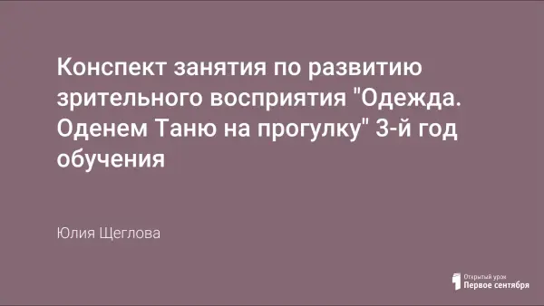 Занятие направлено на развитие зрительного восприятия для детей с нарушением зрения третьего года обучения. Коррекционная направленность определена выбором приемов, с учетом состояния зрительных функций, уровнем развития зрительного восприятия. Разработку в своей работе может использовать учитель-дефектолог. Отдельные задания можно применять в работе воспитателя специализированной группы в индивидуальной работе с детьми.