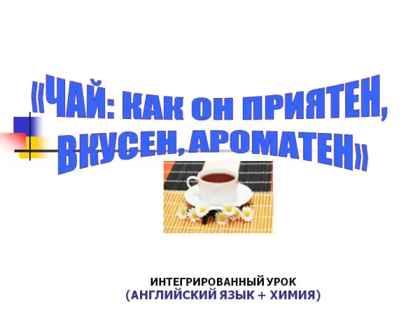 Интегрированный урок (английский язык+химия) проводится в нетрадиционной форме с целью приобретения учащимися лингвострановедческих знаний; приобщения к иноязычной культуре; развития словесно-логического мышления на английском языке. Ученики приобретают знания по химическому составу чая и молока. Для создания благоприятного эмоционального фона кабинет оформлен в виде «Чайного дома». Используются технические средства обучения, информационный материал, химическое оборудование и реактивы.