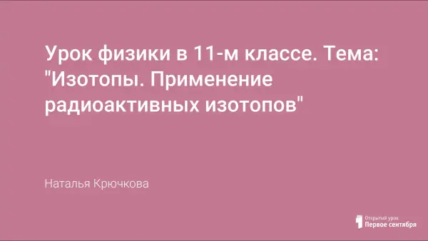 На уроке вводится понятие «изотопы», повторяется и обобщается информация по теме «Радиоактивность».