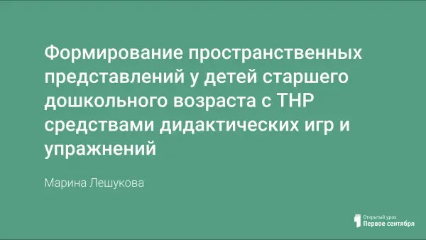 Формирование пространственных представлений является одной из важнейших задач коррекционной работы, проводимой с детьми с ТНР. У детей с ТНР наблюдаются трудности формирования пространственных представлений, а также трудности их языкового оформления.