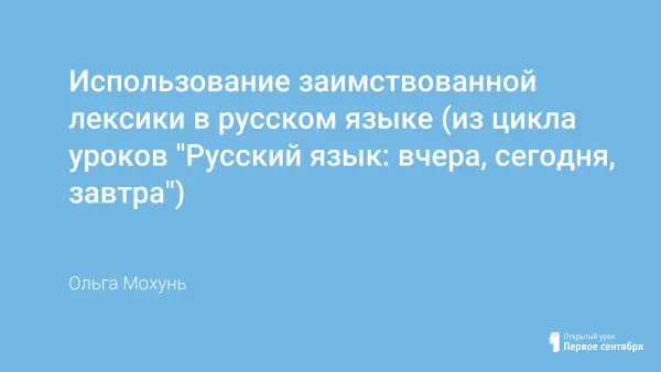 Использование заимствованной лексики в русском языке (из цикла уроков "Русский язык: вчера, сегодня, завтра")