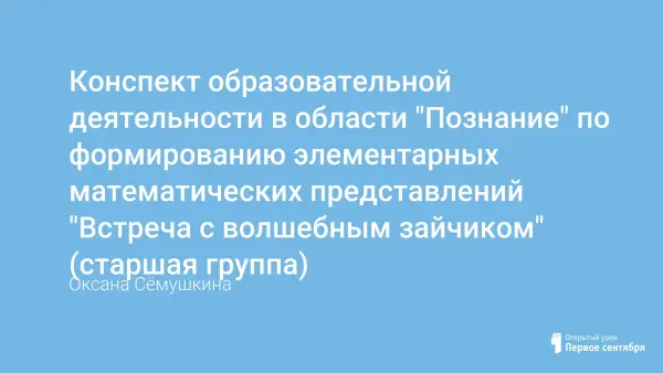 Конспект образовательной деятельности в области "Познание" по формированию элементарных математических представлений "Встреча с волшебным зайчиком" (старшая группа)