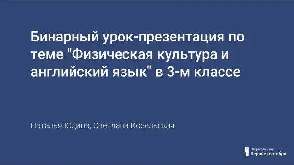 Основная цель бинарного урока – закрепить у детей знания английского языка физическими упражнениями.