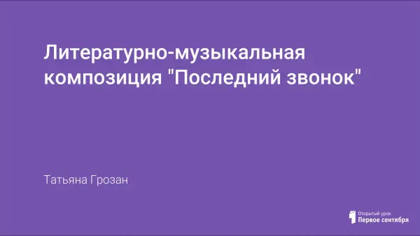 Литературно-музыкальная композиция посвящена самому главному празднику для старшеклассников. Ведь "Последний звонок" –долгожданный праздник, который подводит итоговую черту под нашими заботами, хлопотами, огорчениями и радостями. Перед классными руководителями стоит задача сделать этот праздник ярким, интересным и незабываемым.