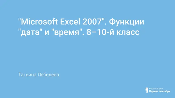Урок продолжает изучение функций программы Microsoft Excel 2007, входящей в пакет Microsoft Office. Цель урока: освоение функций "дата" и "время". Функции используют для преобразования форматов, вычислений промежутков времени, а также для вставки на лист автоматически обновляемых значений даты и времени. Урок повышает мотивацию учащихся.