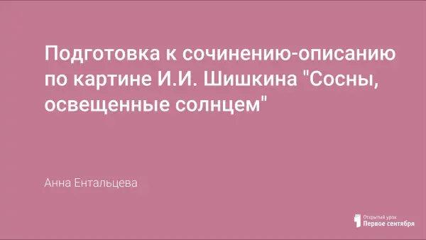 Цели урока: познакомить с жизнью и творчеством И.И. Шишкина; подготовить учащихся к сочинению-описанию по картине; обогатить словарный запас учащихся; повторить сведения о научном и художественном описаниях; показать разницу жанров: лирического жанра (стихотворение) и жанра живописи.