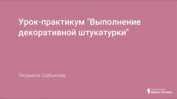 Урок помогает формировать и закрепить способы нанесения декоративной "каменной" штукатурки и штукатурки под "шубу", развивать навыки самостоятельности, выполняя декоративную штукатурку в соответствии с технологической последовательностью.