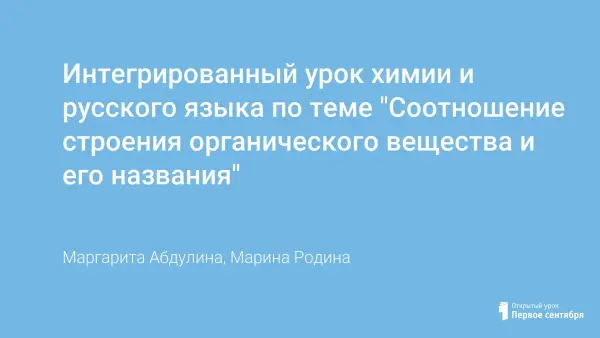 Интегрированный урок химии и русского языка по теме "Соотношение строения органического вещества и его названия"