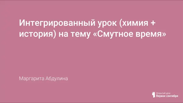 Урок построен на основе метода синектики. Исторический процесс рассматривается в сравнении с химическими реакциями. Ведется урок двумя учителями (истории и химии). Материалы курса химии призваны придать наглядность историческому процессу, она помогает учащимся постичь всю глубину событий истории.